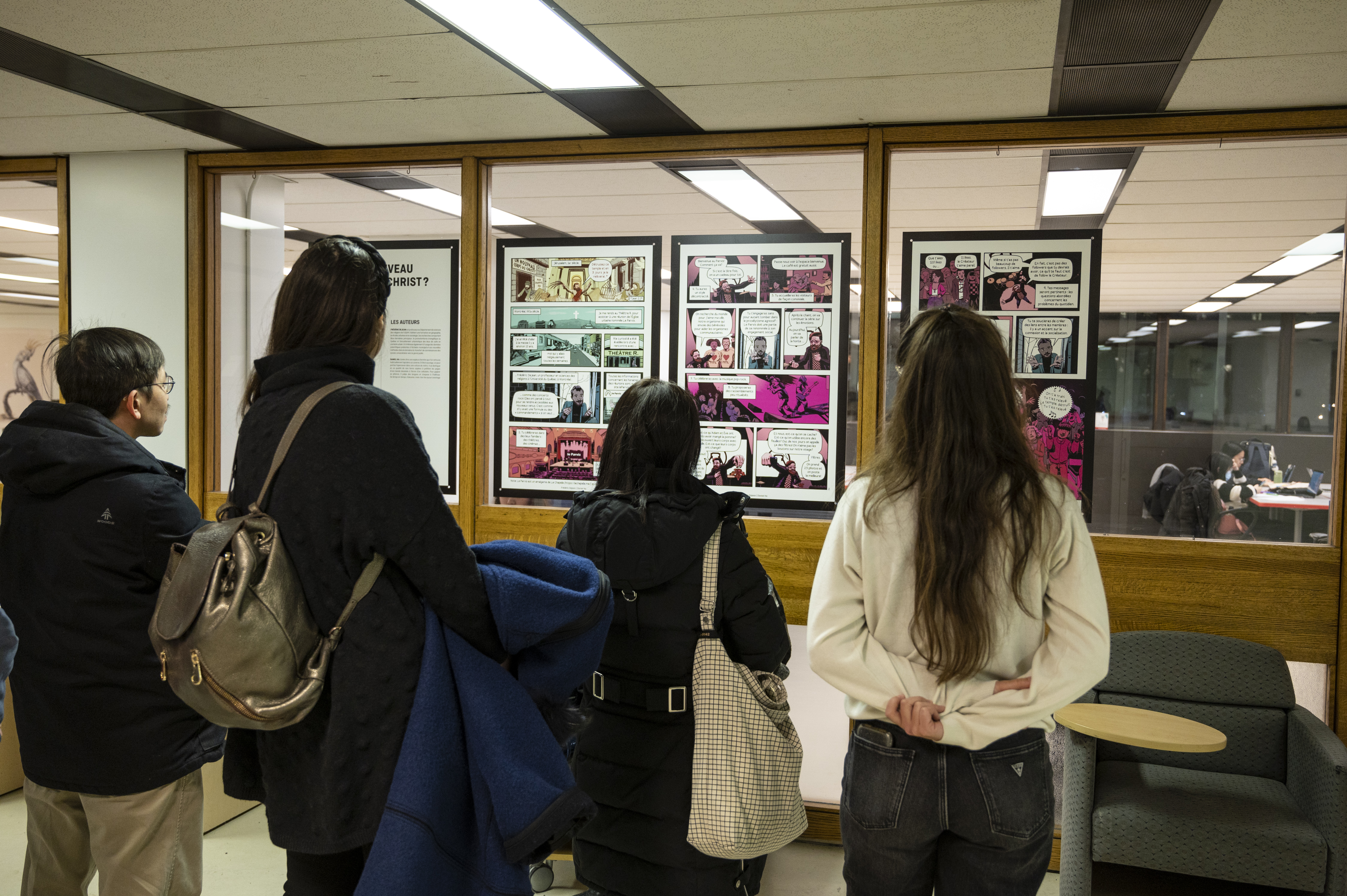 Photos de l'exposition « De la recherche aux phylacteres : la vulgarisation scientifique par la bande dessinee »