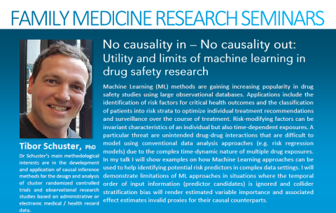 Séminaire de recherche: « No causality in - No causality out: Utility and limits of machine learning in drug safety research » par Tibor Schuster, PhD
