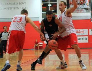 With three starters out to injury -- Simon Bibeau (6-foot-3), Tristan Renaud-Tremblay (6-7) and Nicholas Yantzi (6-10) -- DeAveiro dressed only 10 players for the second straight contest and nine of them registered points. Rounding out the scoring for McGill was rookie Christian McCue (8), sophomores Aleksandar Mitrovic (6), Vincent Dufort (4) and Nathan Joyal (3). Seniors Winn Clark and Nicolas Langley had two points apiece, with Clark pulling down a team-high six boards and Langley grabbed five.