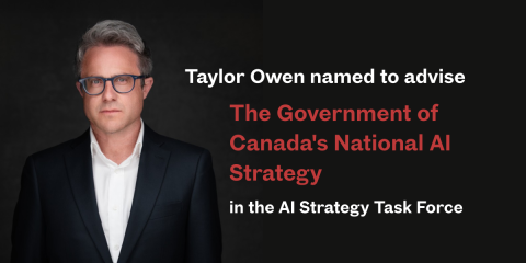 Taylor Owen Appointed to Government of Canada AI Strategy Task Force