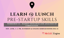 This workshop will provide an overview of the different types of market research, how to analyze the competition, and the resources available at McGill to perform market research. Our market research librarian will walk us through some of those resources using a new market research canvas tool.