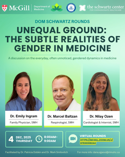 Join us for the next session of the DOM Schwartz Rounds, presented as a special edition of SMH Medical Grand Rounds via Zoom on December 4th, 2025, from 8:00 AM to 9:00 AM.