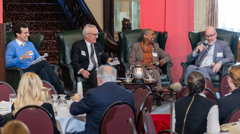 The closing panel, moderated by Sebastien Betermier, Associate Professor of Finance at McGill Desautels and Executive Director of the International Centre for Pension Management, explored the balance between profitability and ethical responsibility. Charles “Duff” Sullivan former Managing Director and President of Boeing Canada and C. Scott McElvaine of Pratt & Whitney Canada drew on lessons learned from past challenges, such as the Boeing 737 MAX incidents, emphasizing the important role of collaboration in rebuilding trust and prioritizing safety within the industry. McElvaine emphasized the need for an evolution in safety practices, stating, “If you don’t have safety, you won’t make any money.” Along with the other panelists, Angela Gittens, former Director General of the Airports Council International, underscored the need for better coordination between airport staff, businesses, regulators, manufacturers, customers, and other stakeholders to ensure alignment on ethical practices and regulatory standards.