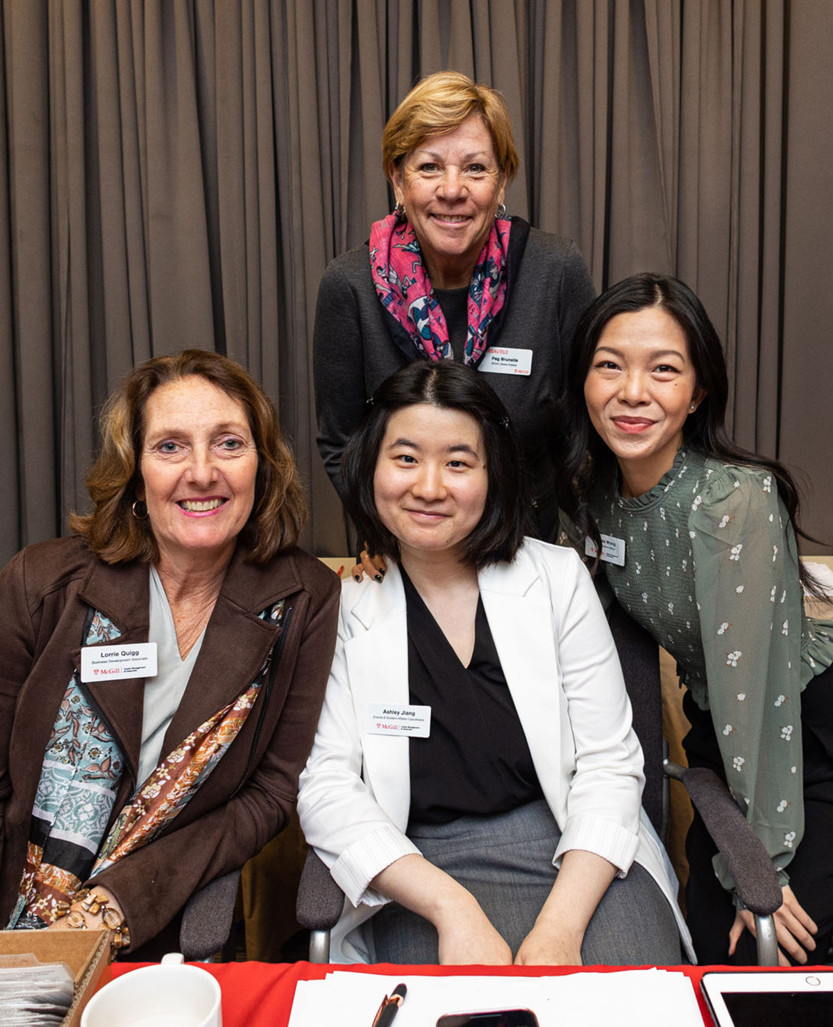 Career Management team at the registration table. From the top, and then left to right: Peg Brunelle (BCom Career Coach), Lorrie Quigg (Business Development), Ashley Jiang (Event Lead), Melissa Wong (Communications Officer).