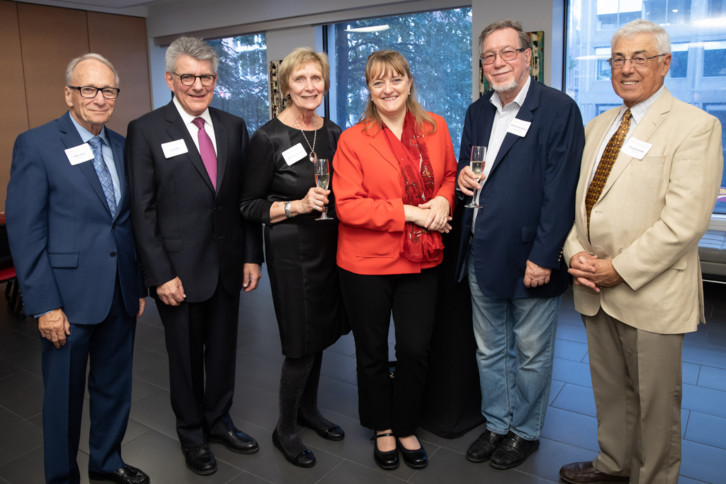 Dean Isabelle Bajeux-Besnainou with BCom alumni Gilles Jarry (BCom'69), Joel Raby (BCom'69), Rosemarie Gage (BCom'69), Michel Del Buono (BCom'69) and Claude Bismuth (BCom’69)