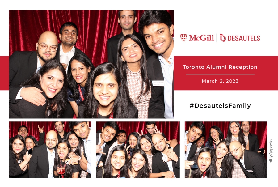 Alumni Reconnect Reception: photobooth fun with current MBA students graduating in 2023 and 2024.