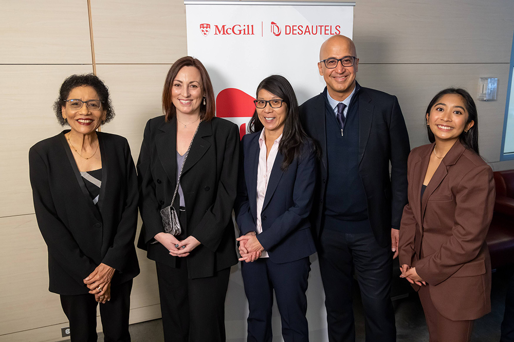 Yolande Chan, Dean Desautels Faculty of Management; Anna Dewar Gully, BA’03, Co-CEO and Founder, Tidal Equality, Management Achievement Award; Dr. Joanne Liu, MD’91, IMHL’14, DSc’16 - Former International President of Médecins Sans Frontières/Doctors Without Borders. Professor, School of Population and Global Health and Director, Pandemics and Health Emergencies Readiness Lab (PERL), McGill University. Lifetime Achievement Award; Yalmaz Siddiqui, BCom’92 - Vice President of Environmental Sustainability, The Walt Disney Company, Management Achievement Award; Brianna Tejada, DMAA Co-Executive Director