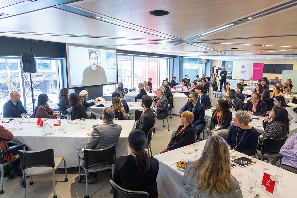 Young Inspiration Award recipient Philip Cutler (BEd’13), Co-founder and CEO of Paper gives speech remotely