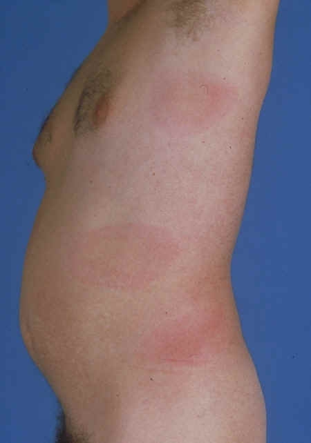 Image 5. Returned to Montreal after 2 weeks in West Africa where he had noted the onset of malaise, low grade fever and an erythematous non-indurated 6 inch diameter patch in the right groin. Over the subsequent week new patches appeared, while the original patch persisted but slowly faded. The diagnosis is: